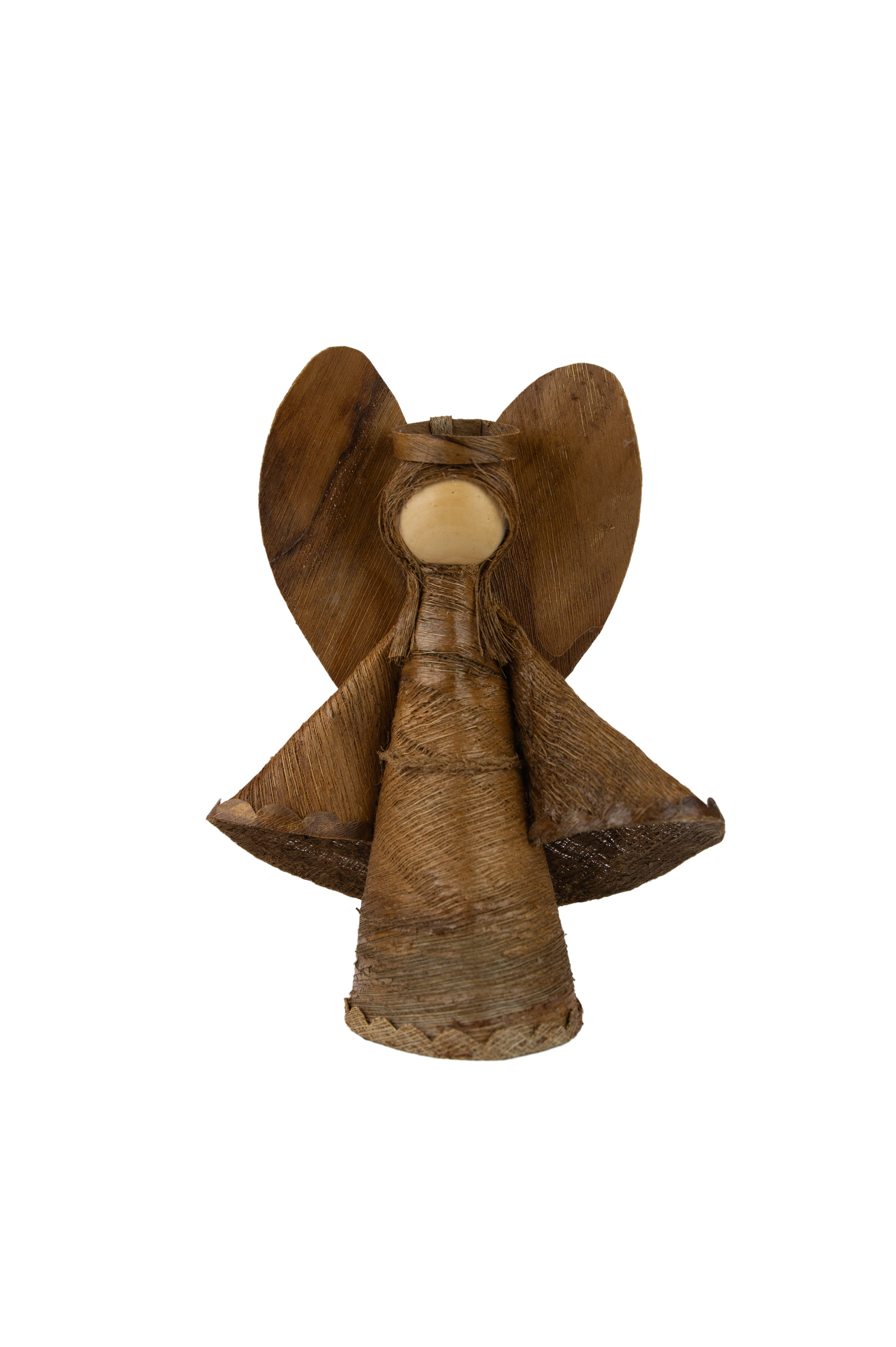 This one-of-a-kind angel tree topper is crafted from coconut bark that was gathered from trees in the Philippines. With its warm, neutral tones, this angel will beautifully complement any holiday decor. Each tree-topper is handmade by Louela Nalzaro, a dedicated single mother who pours love and skill into every piece she creates to support her two children. Your angel comes with an artisan card that shares Louela's inspiring story, adding a meaningful touch to your holiday traditions.
