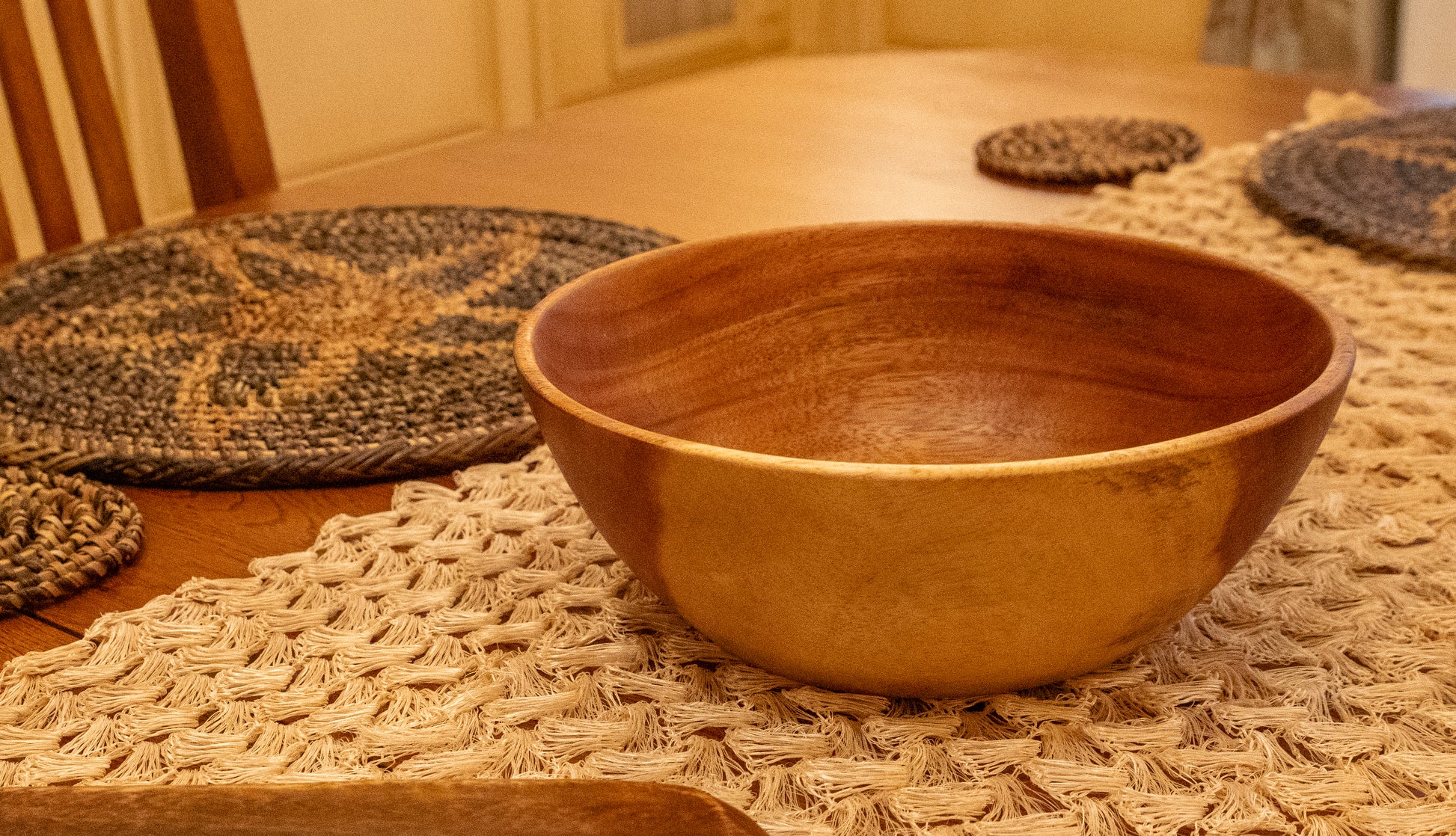 This gorgeous bowl is made in the Philippines by woodworker Frank Cajumban. Each bowl is about 10 inches wide and 4 inches deep. They are perfect for decor or for serving! Every piece is unique and comes with a card showing the artisan and telling his story.