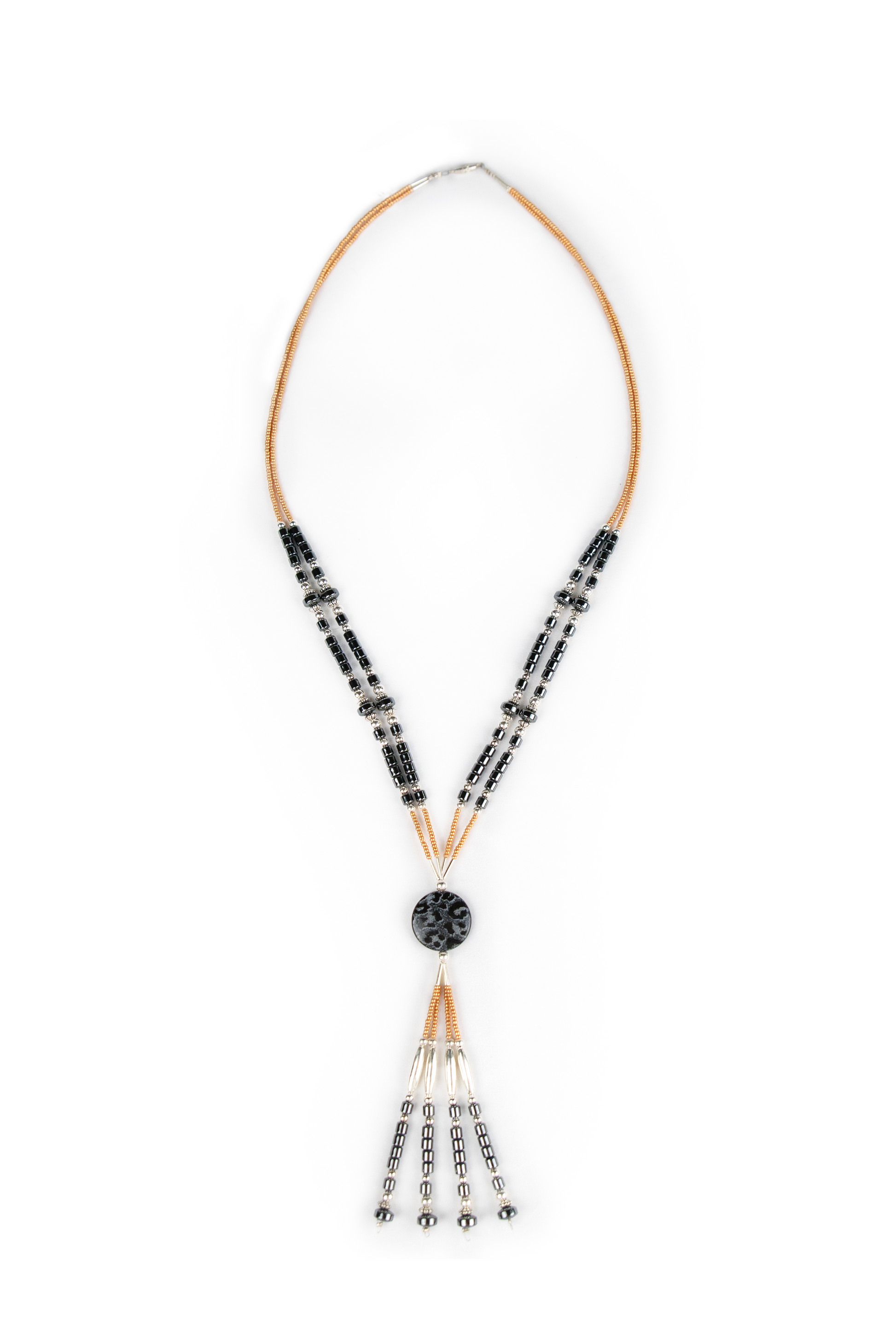 This beautiful necklace is crafted by women from the Navajo Nation who became desperate for income when the COVID-19 pandemic dried up their usual customer base of tourism. They are so grateful that Elevita was able to help them find a stable market for their handmade jewelry! Like our other Navajo products, this is a one-of-a-kind Native American piece, meaning that we have only ONE of this unique necklace in inventory.