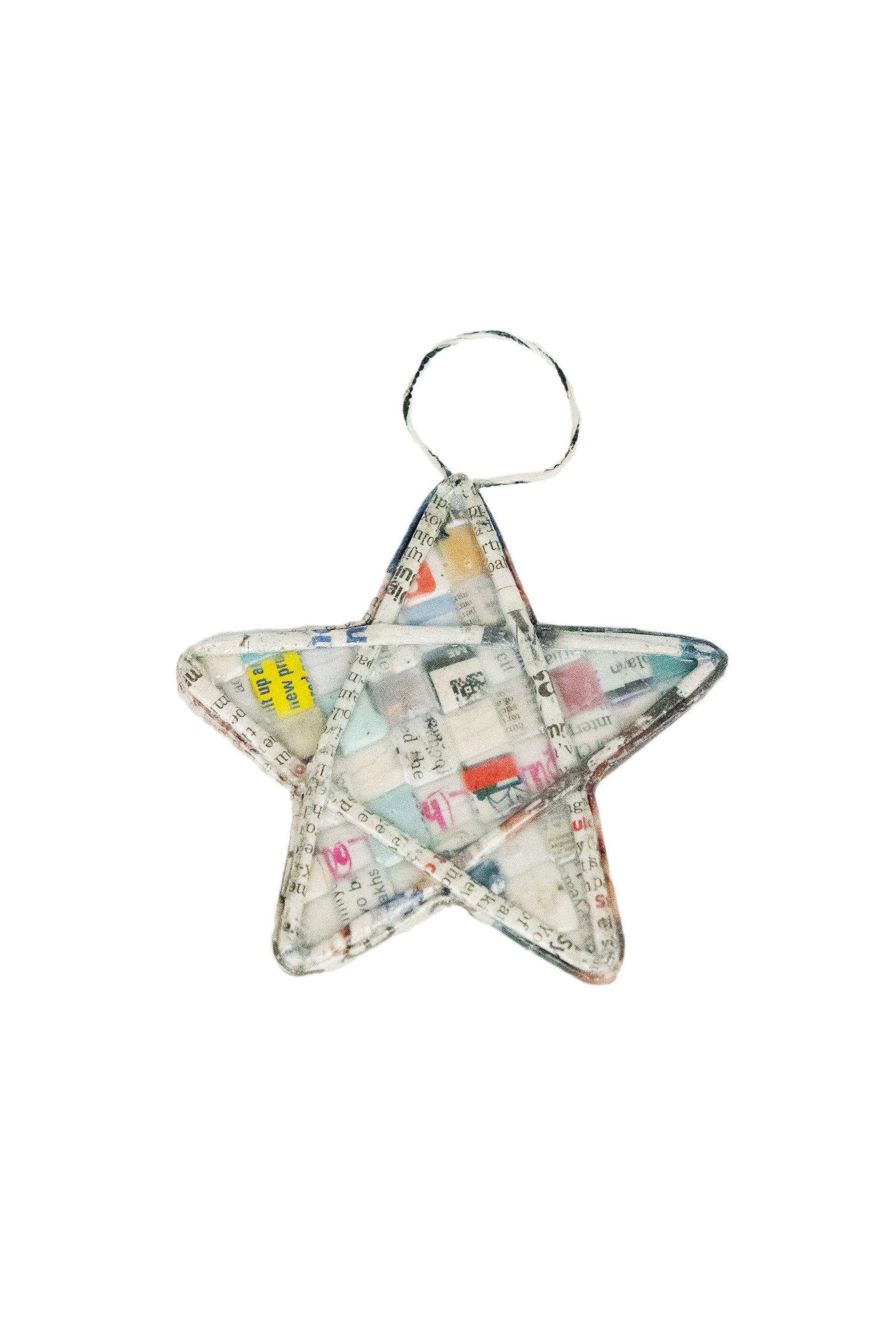 This trendy star ornament is intricately made of woven newspaper. The creators are a group of children with special needs in Chennai, India, who carefully craft the stars as part of their vocational training. Directors at the impressive Pathway Children's Centre lovingly instruct the young artisans on how to weave the stars. 100% of profits go directly to the children at Pathway to help support their costs. Each star is about 3 inches high and comes with a card telling the story of the children at Pathway.