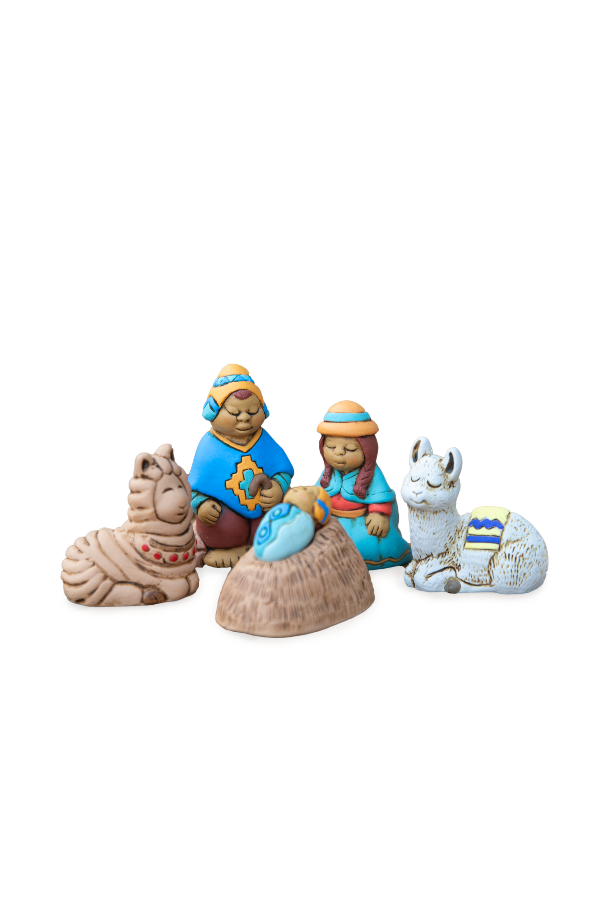 This beautiful 6-piece ceramic nativity set from the Andes, crafted by Eduardo Gonza and his team in Peru, celebrates Peruvian heritage. Made from local clay, it features Mary and Joseph lovingly watching baby Jesus with a llama and an alpaca by their side, symbolizing the mountains of Peru. At 2.25" tall, each piece reflects the artistry and cultural pride of the Andes, making it a meaningful addition to your holiday decor.