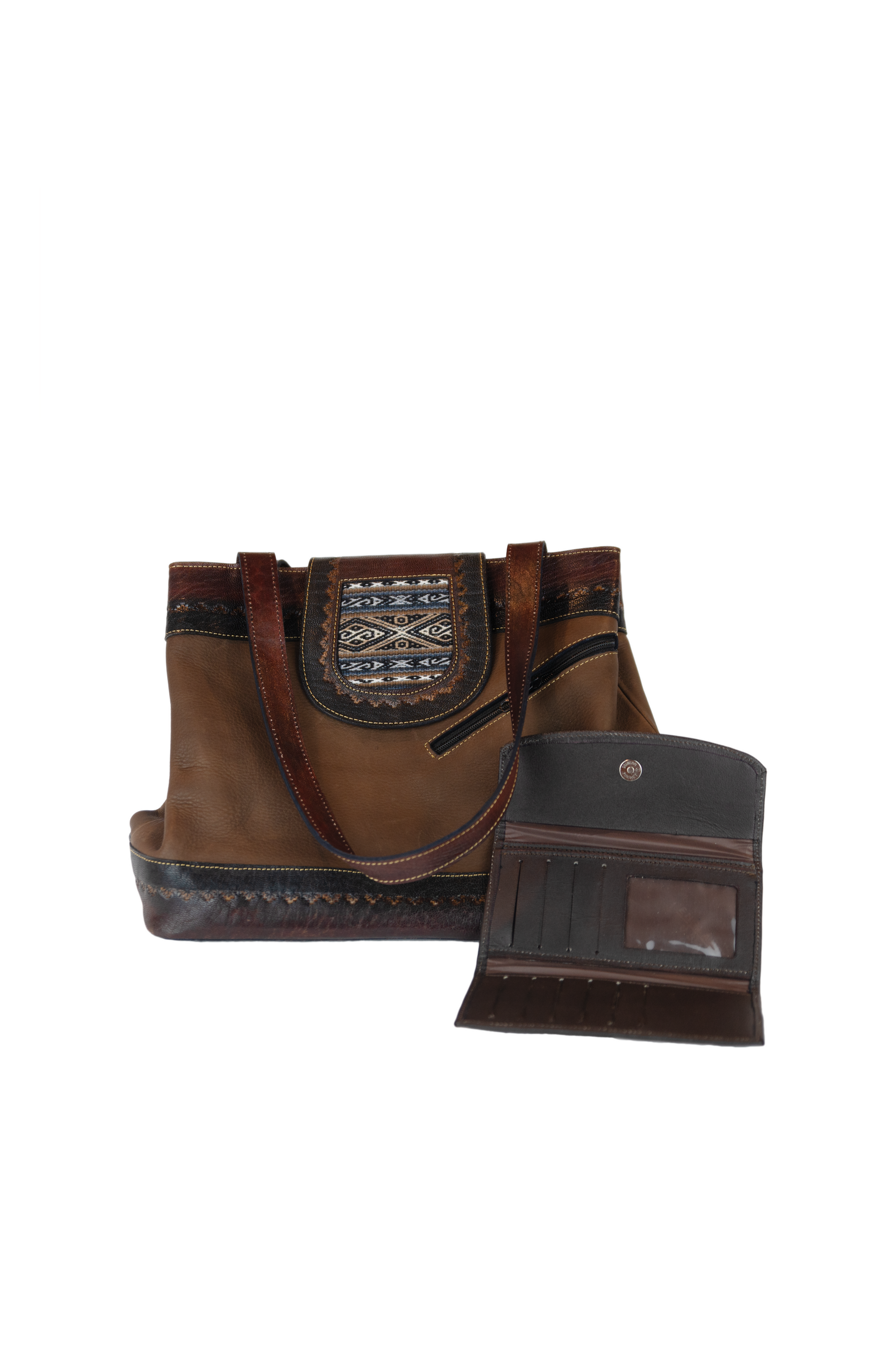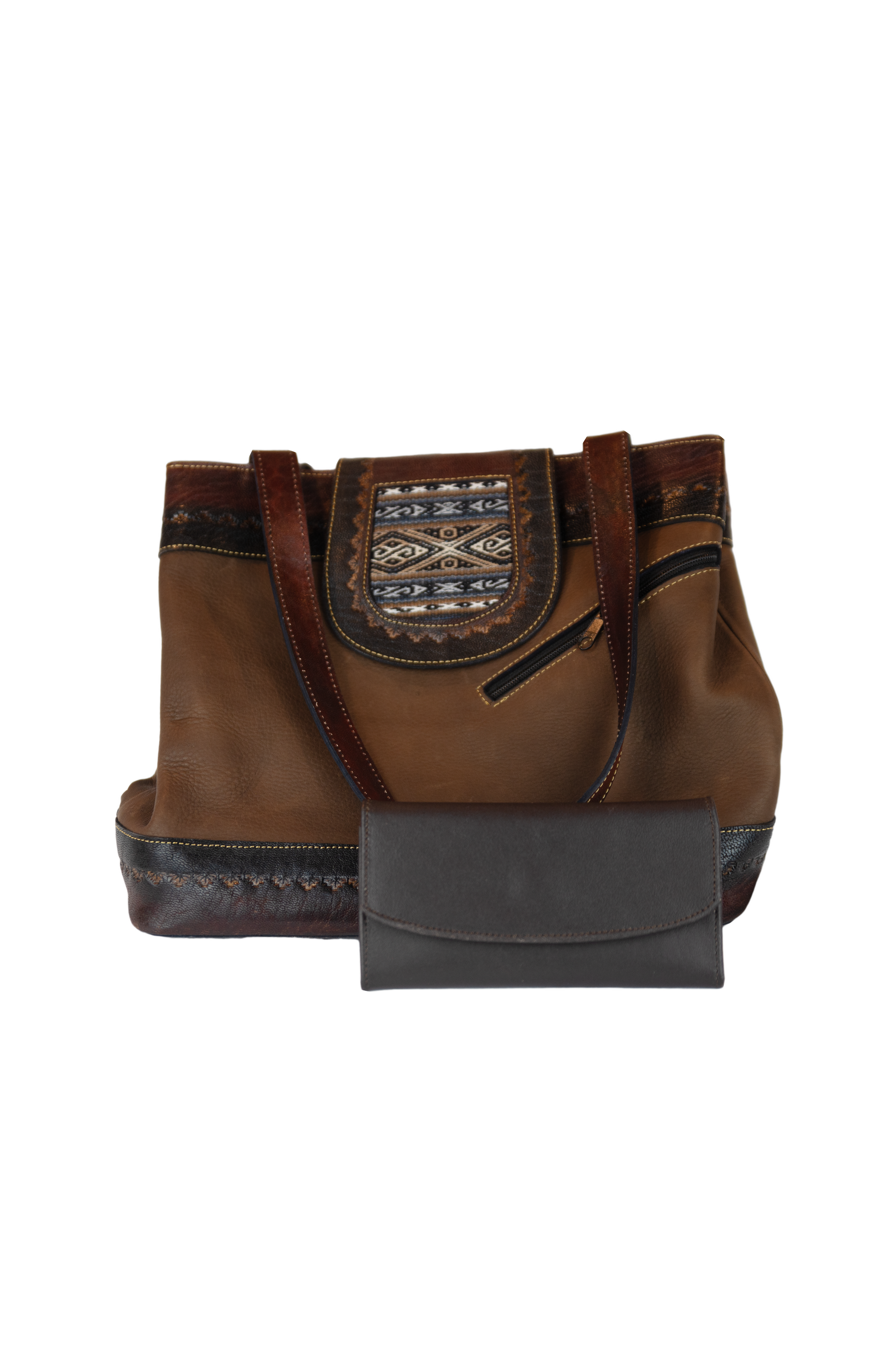 These beautiful leather purses are masterfully crafted by Peruvian artisan Wilbert Tumpay, who thoughtfully incorporates local traditional weaving to create highlights that celebrate his heritage. Wilbert’s exceptional skills are showcased in each piece, yet his ability to reach a broader market has been limited within his hometown. Through Elevita, Wilbert is thrilled to share his unique creations with customers around the world. Complete the look with Wilbert's matching leather wallet featuring a magnetic closure, plus space for cards, cash, and ID – crafted with the same care and detail.