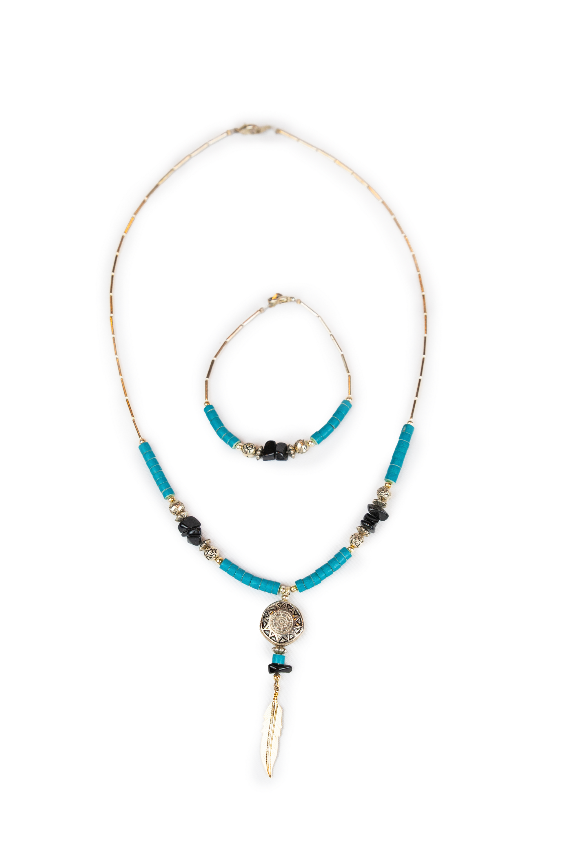 This beautiful necklace and bracelet set is crafted by women from the Navajo Nation who became desperate for income when the COVID-19 pandemic dried up their usual customer base of tourism. They are quality pieces with sterling silver clasps. The Native American women are so grateful that Elevita was able to help them find a stable market for their handmade jewelry!